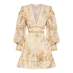 Camilla Button Front Frill Mini Dress Adorned in Antiquity Size XL