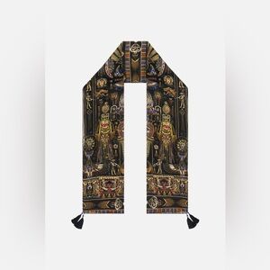 Camilla “Cartouche Kingdom” black silk Egyptian scarf shawl head wrap top belt