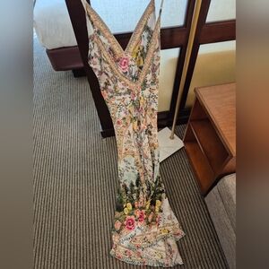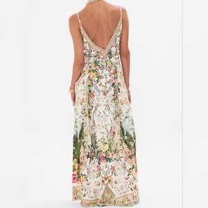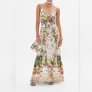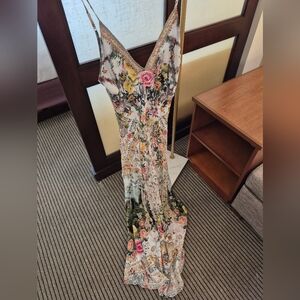 Elegant maxi dress with vibrant floral patterns. Features a V-neckline and flowing silhouette. Perfect for any occasion.