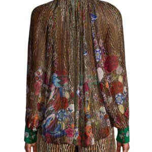 From the Mythical Creatures Collection. Floaty silk blouse fuses floral and animal print.