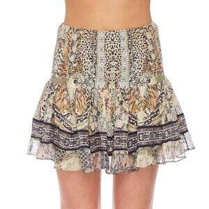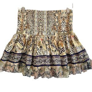 Camilla Shirred Floral Animal Print Smocked Mini Skirt Moto Maiko Size Small