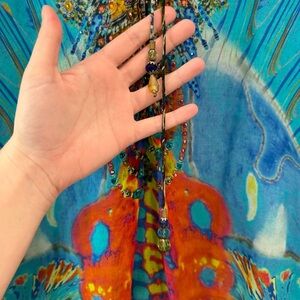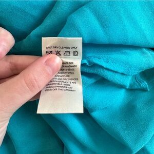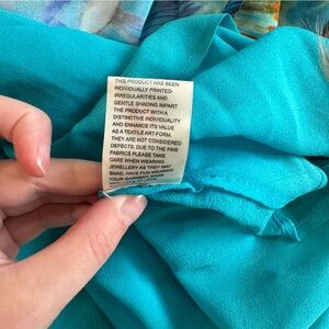 Camilla Short Lace Up Kaftan in "Take My Hand". O/S/ One Size. Great used condition. No flaws such as stains, rips, or discoloration. Featuring: relaxed fit, v-neckline, crystal embellishment, lace up tie-front, tassel details. 100% silk.