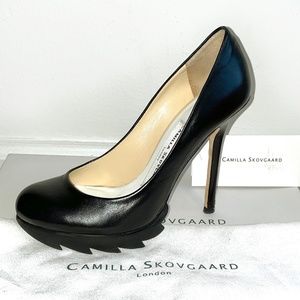 Camilla Skovgaard leather round-toe pumps with saw platform and stiletto leather heels.