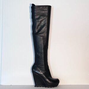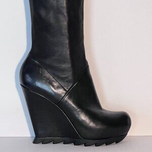 Camilla Skovgaard Over The Knee Black Leather Sawtooth Wedge Boot Sz 8.5