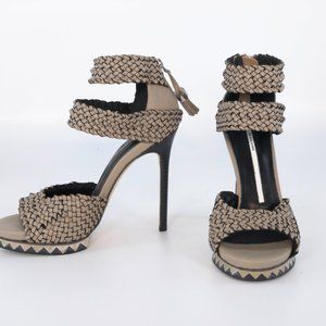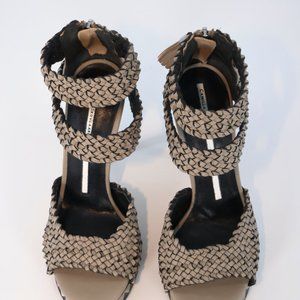 Camilla Skovgaard Ash Gray Tan And White Woven Leather Platform Sandals Size 37. They have little tassels on the zipper closure. Please ask all questions before purchasing. Brand new with box and bag