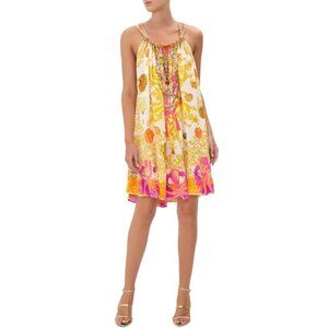 Camilla 'Squid Squad' Drawstring-Tie Printed Silk Mini Dress, Multicolor