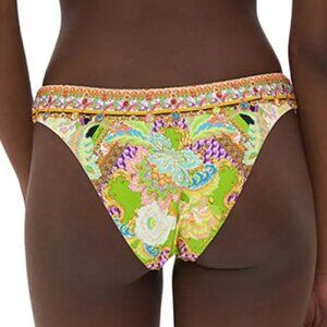 Camilla "Sundowners In Sicily" high-leg bikini bottoms featuring a print inspired by colorful Italian cloth and the spirit of summer time aperitivo hours.