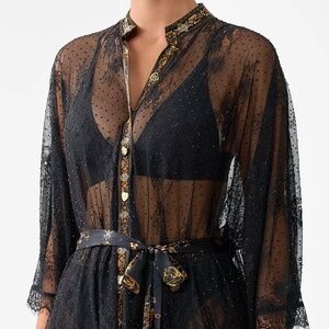 Camilla XS/S Button Through Lace Scarf Black Blouse