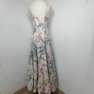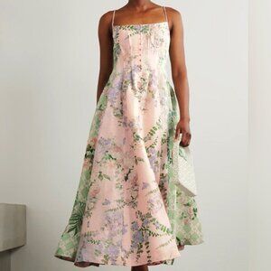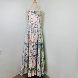 This meticulously handcrafted bustier maxi dress perfectly blends structure and fluidity. The fitted bodice and floor-length skirt are detailed with through-front buttons and a bold center front slit for added drama.