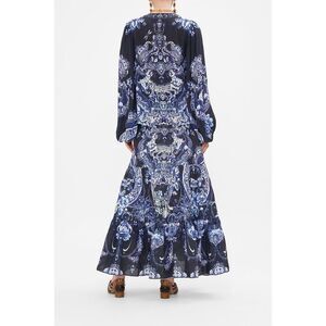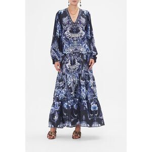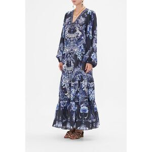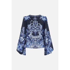 Camilla silk V-Neck Blouson Sleeve Blouse Delft Dynasty Large