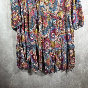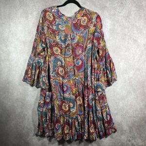 Camille & Co. Dress Womens Size XL Multicolor Paisley Tiered Bell Sleeves Boho Festival Hippie
