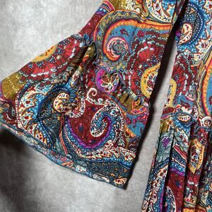 Camille & Co. Dress Womens XL Multicolor Paisley Tiered Bell Sleeves Boho Hippie