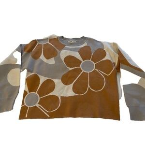 Camille & Co Womens Knit Mod Floral Retro Sweater Brown/Cream/Grey Size Small