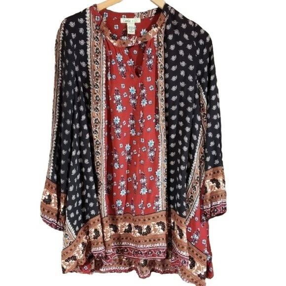 Camille & Co keyhole front boho pattern mini dress woman's size small