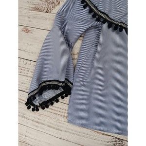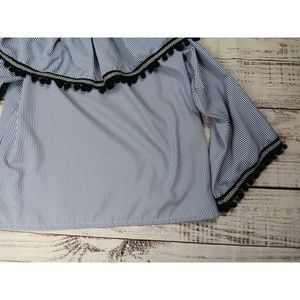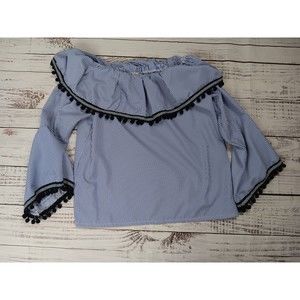 Camille & Company Off The Shoulder Blouse Women's Large Blue White Stripe Ruffle