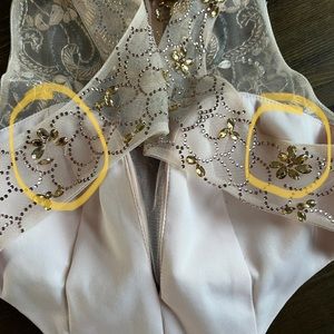 Camille LA VIE Beaded Bodice Gown Blush Pink with Waist & Back Cutouts Size 2