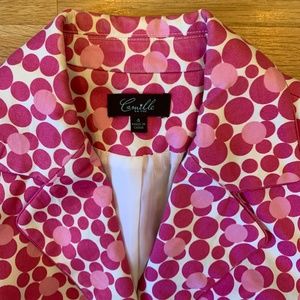Camille La Vie Pink Polka Dot Fitted Suit Blazer