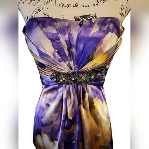 Camille La Vie Purple and Gold Strapless Gown