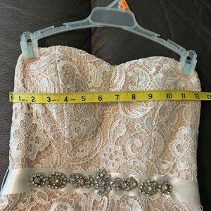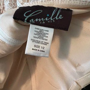 Camille La Vie Strapless Floral Lace Overlay mini Dress Size 1/2 Nude & …