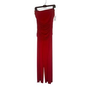 Camille La Vie Women's L Red Strapless Ruched Wide-Leg Jumpsuit Elegant Chic,