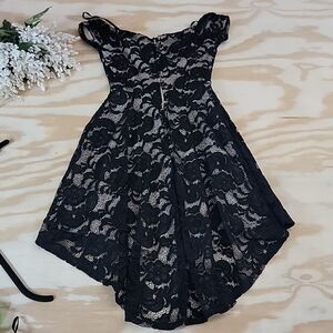 Camille LA Vie Black Lace Asymmetrical Cocktail Dress