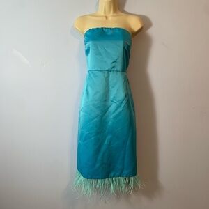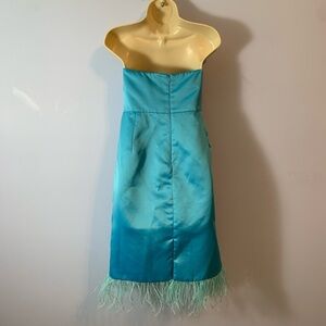 Camilyn Beth the Sheila strapless babydoll mini dress feather trim pool blue 16