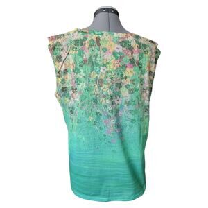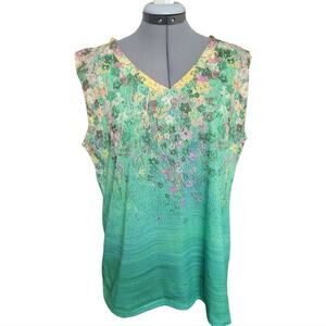 Camisa Green Floral Sleeveless V-Neck Top Tank Size XXL