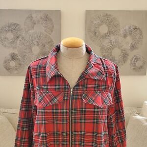 Refresh your weekend look with this zip-up tunic that features a bal collar. A drawstring waist lets you fine-tune the fit, and a curved hemline makes a graceful transition to whatever you wear on the bottom.