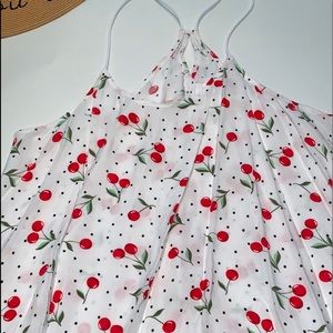 Beautiful dress tank, Cherry and Polkadot print. Easily pairs up with jeans or slacks