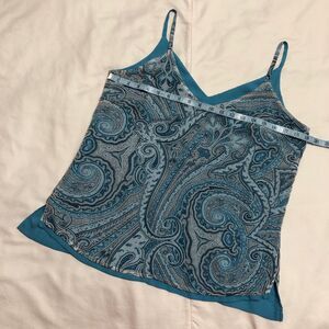 Camisole Womens Size Medium Blouse Turquoise Blue Paisley Pattern