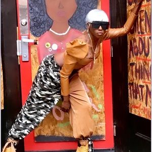 Draw string crop top not to mention the details in the pants are beautiful 🤩