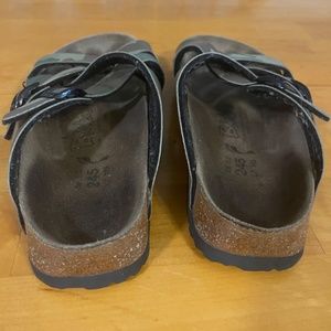 Two adjustable straps help with a custom fit. Cork footbed is in great condition and the soles show no signs of wear.