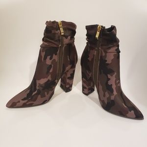 Camo Slouchy Mid Bootie. Size 6.5. Qupid.You will not want to miss out on this pair, it will definitely be on your permanent bootie rotation. New, never used. Featuring a pointed toe, block heel, side zipper closure, and design that’s slouchy at the ankle. Material: Man-made, stretched fabric, sole synthetic, heel Height 4” (Approx). See all photos for details.