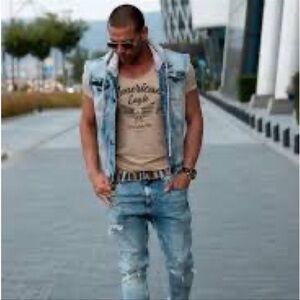 Camo Coll Classic Fashion American Flag Vest Denim Distressed Tang Ku L