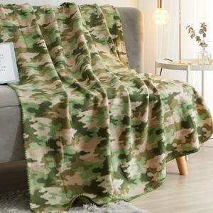 - Camo Fleece Throw Blanket 50" x 60" Cabin Camouflage Military Green NIP