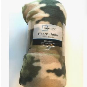 Camo Fleece Throw Blanket 50" x 60" Mainstays hunting cabin Camouflage men gift camping Military Green NIP