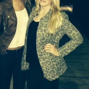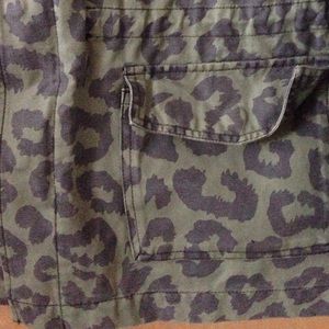 Dark green jacket with 4 pockets and able to adjust waist tightness.