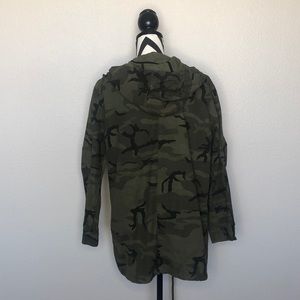 Who isn’t obsessed with camo?! Great jacket to spice up any outfit. Has a hood and draw strings to bring it in for a more fitted look. Has button pockets. This is more of a fashion/light jacket. It’s not going to keep you super warm. EUC. No flaws.