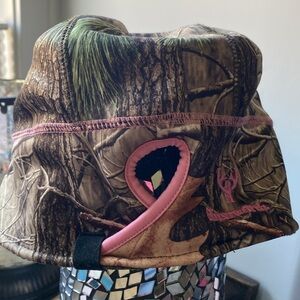 Camo Military Cap Hat Womens pink stitch soft fleece lined ponytail hole stretch