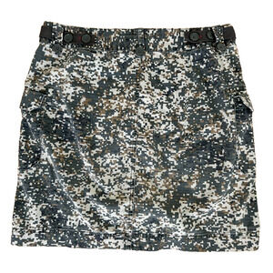 Get ready for your next adventure with this stylish camo skirt from Telluride Clothing Co. Made from high-quality cotton material, this straight pencil style skirt features a unique digital camouflage of tan, burnt orange and green. Perfect for travel, casual outings, or outdoor activities, this skirt is designed with cargo pockets, a button, and zipper closure for added convenience. Whether you're going on a hunting trip or just relaxing at the cabin, this skirt is a must-have addition to your wardrobe. It's available in size 8 and machine washable for easy care.