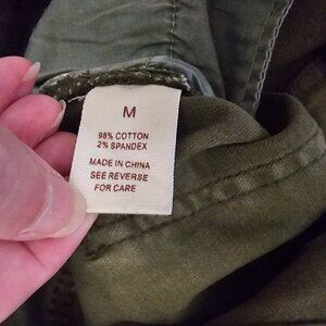 These medium-size camo print distressed jeans with a skinny fit and raw hem provide a stylish, edgy look, suitable for casual and trendy outfits.