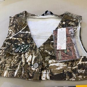 Stylish camo vest and pants set. Perfect for outdoor adventures. Brand new with tags size S
