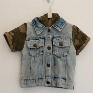 Camo Sleeve Denim Hooded Jacket Kids 3-4T Jean Vest Urban Streetwear Style
