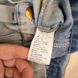 ✔ Color: Light wash denim with green camo print accents