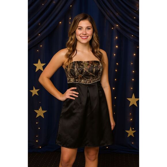 Camo Strapless Dress Womens Medium Black Rhinestone Trim Formal Prom Party Gown