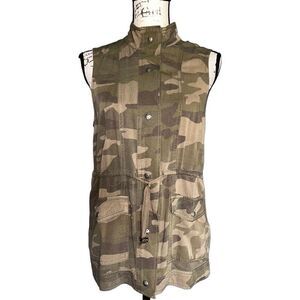 Keywords: camo vest, camouflage vest, utility vest, military vest, sleeveless jacket, army jacket, drawstring vest, pocket vest, womens vest, casual vest, outdoor vest, layering vest, military style