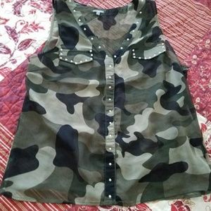 Charlotte Russe Sleeveless camo sheer top with embellishment