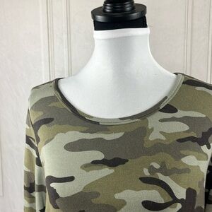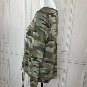 Lightweight, long sleeve camouflage top tie at the bottom size medium Elaine rose brand