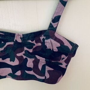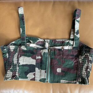 Camo Cropped Bustier, Medium. Smocked Zip up Back. Adorable!