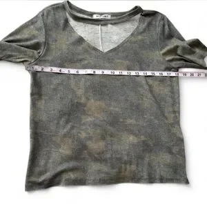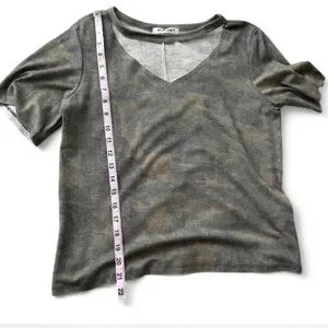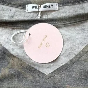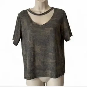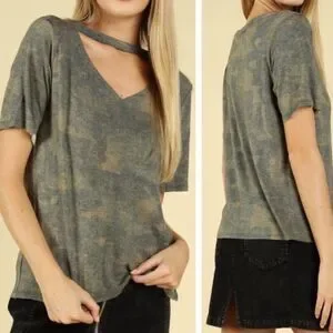 Wild Honey Green Camo Cutout Tee. Super soft high quality fabric. Features cutout neckline. Made in USA.